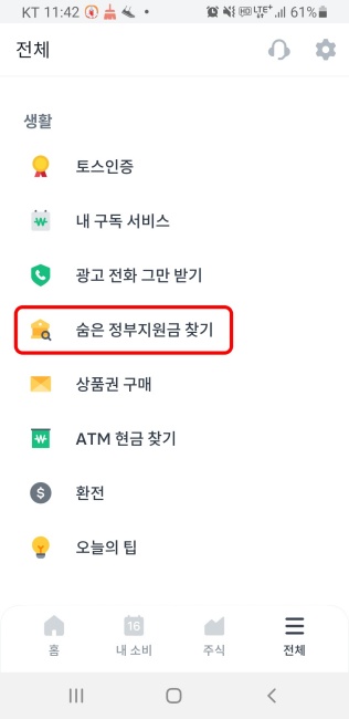 토스 정부지원금 확인 방법 3