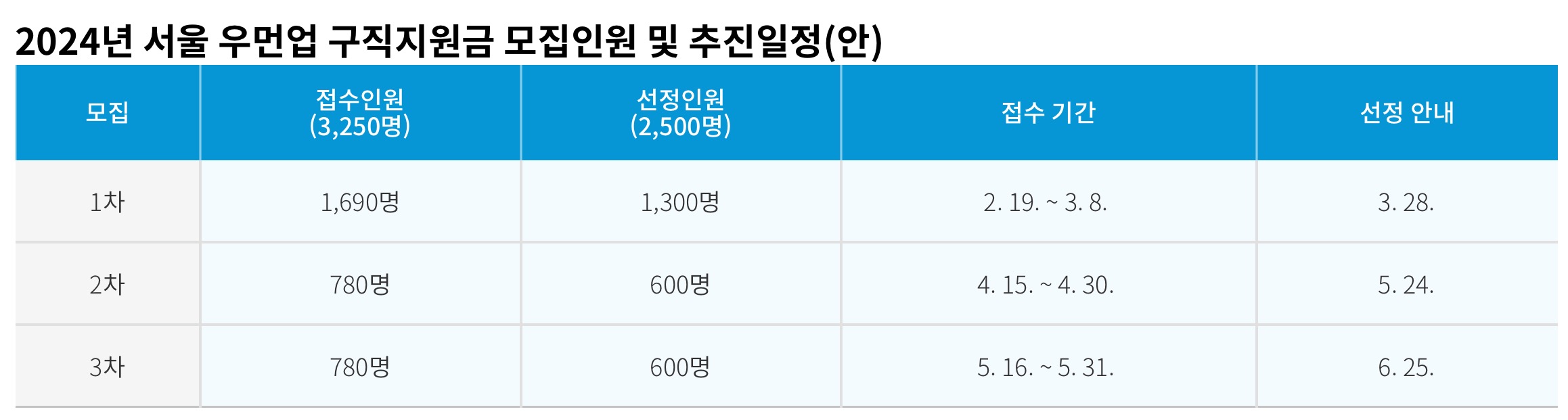 [2024년 서울 우먼업 구직지원금 모집인원 및 추진일정(안)]