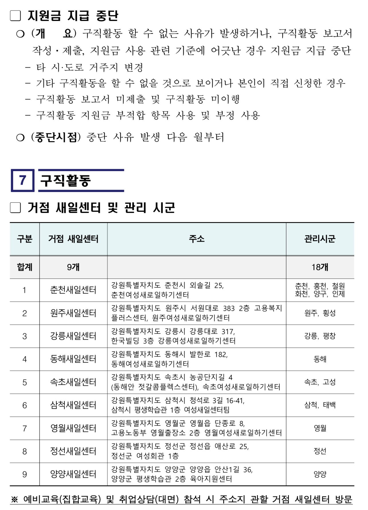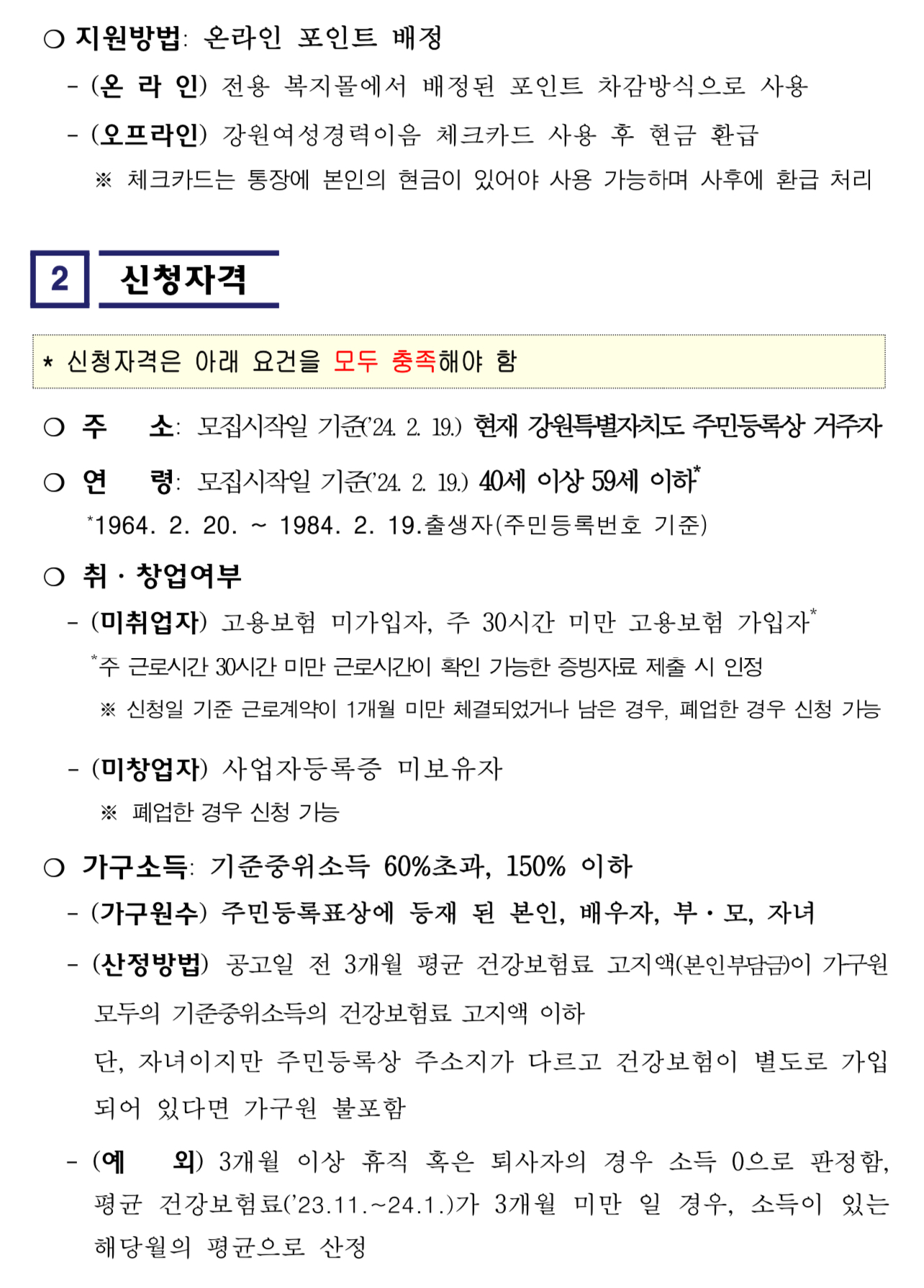 - 모집시작일 기준 본인의 주민등록상 주소지가 강원특별자치도인 미취업 여성