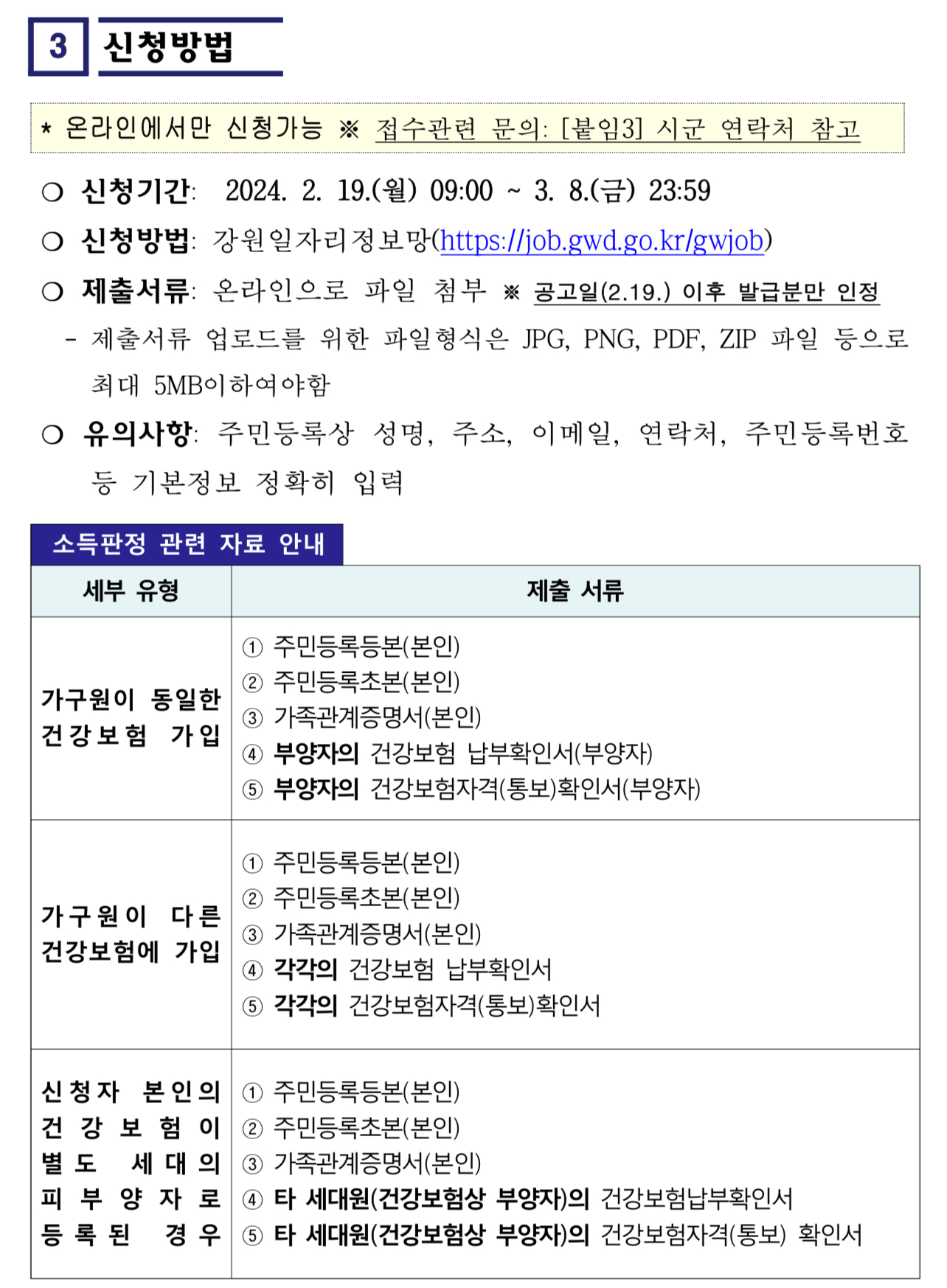 ※ 건강보험료는 노인장기요양보험료를 제외한 본인부담금을 기준으로 함