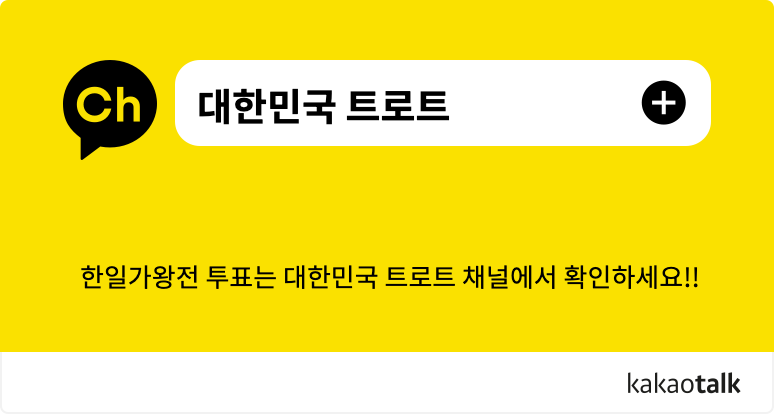 한일 가왕전 투표하기 방법에 대해서 궁금하시거나 한일가왕전에 대한 최신 소식을 알고 싶은 분은 하단에 보이는 카카오톡 채널 추가를 통해서 자세하게 확인할 수 있습니다.